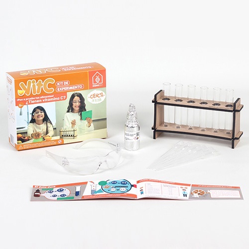 Investiga con tu familia y amigos qué fruta o verdura contiene más vitamina C. Solo necesitas obtener el jugo de la fruta, mezclar unas gotas con el reactivo y observar un sorpresivo cambio de color ¡Descubre si los jugos envasados nos aportan vitamina C!
