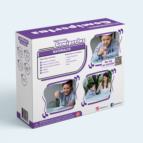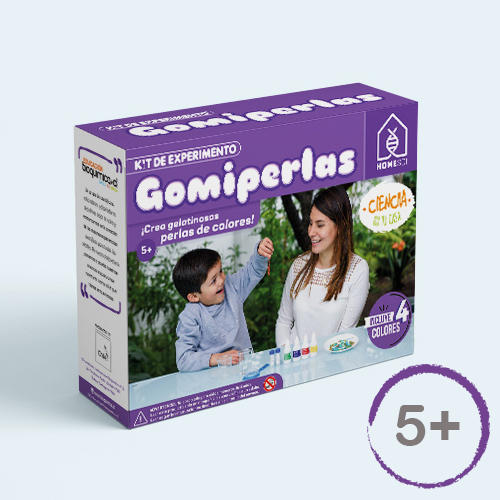 Kit científico para crear divertidas perlas de colores. ¡Crea perlas y gusanos gelatinosos en segundos! Podrás jugar con la divertida textura y colores de tus creaciones. Este kit contiene alginato, un polímero natural obtenido de algas que al estar en contacto con iones de calcio modifica sus propiedades, formando entretenidas gomiperlas.